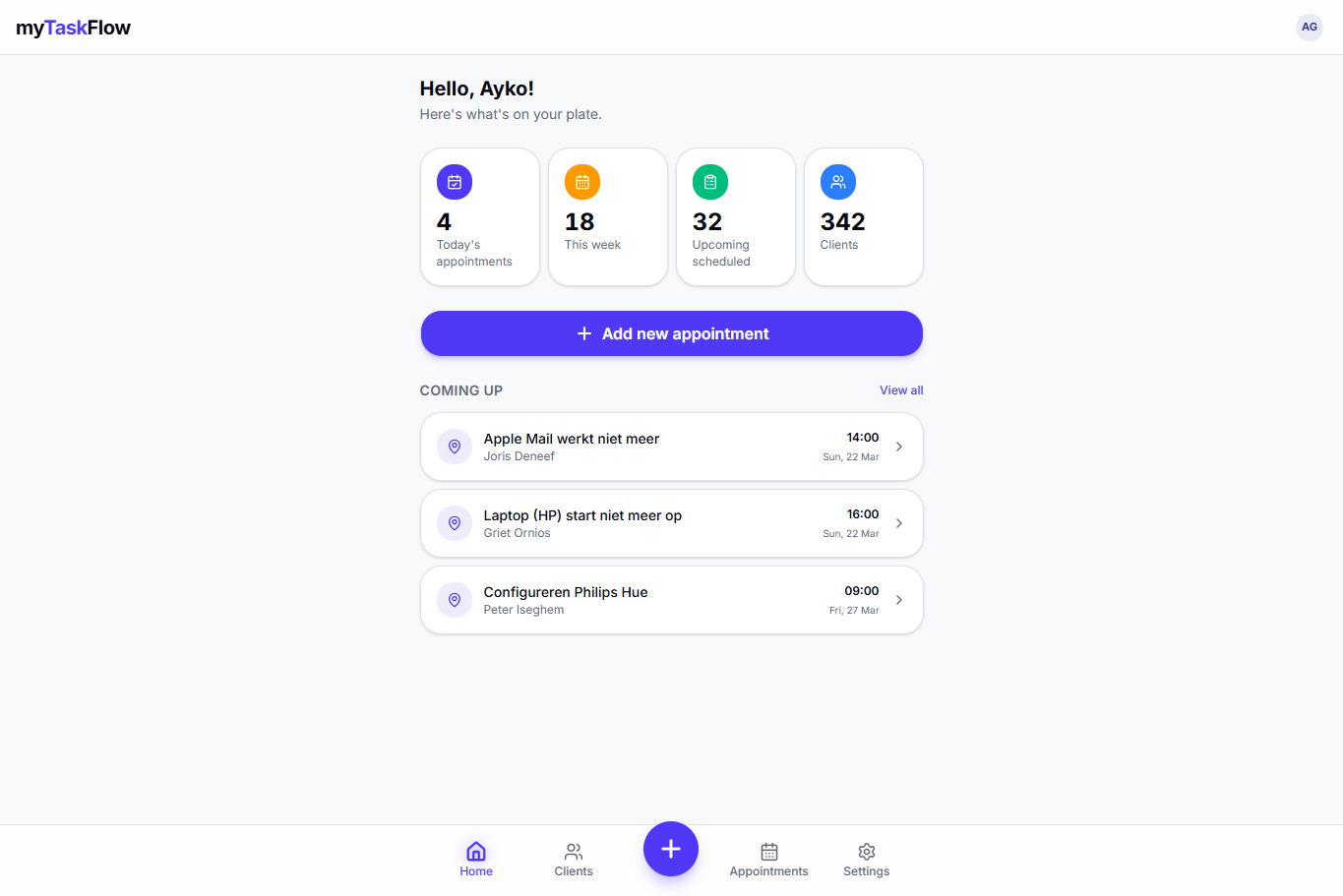 Clients can view their appointments and data at any time — no account needed.